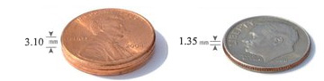 - Dime Thickness is 1.35mm and Diameter is 17.9mm